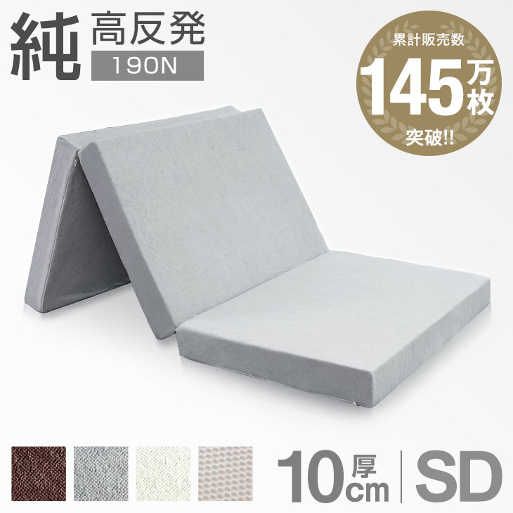 ★12時〜12H全品P5倍★【送料無料】 当店限定「純」高反発マットレス 極厚10cm 三つ折りマットレス セミダブル 190N 洗えるカバー 超低ホル ベッドマット 折りたたみ 高反発マット 3つ折り 10cm 高反発マットレス 密度25D 高反発 マットレス
