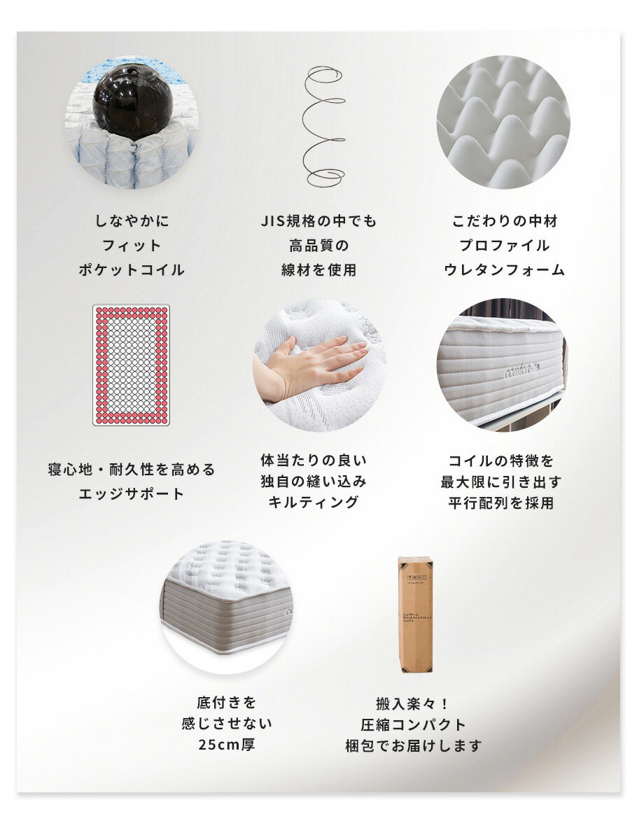 【もれなくP5倍★本日12:00〜23:59】 超高密度 3ゾーン マットレス シングル セミダブル ダブル ポケットコイル ポケットコイルマットレス ベッドマットレス 快眠 体圧分散 極厚 25cm キルティング 通気性 防ダニ 圧縮ロール梱包