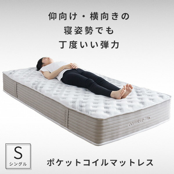 【12H限定P5倍!5/5 12:00〜23:59】マットレス シングル ポケットコイル マットレス エッジサポート コイル数512個 高密度 ベッド シングルマットレス 快眠 体圧分散 極厚 25cm 通気性 〔B〕