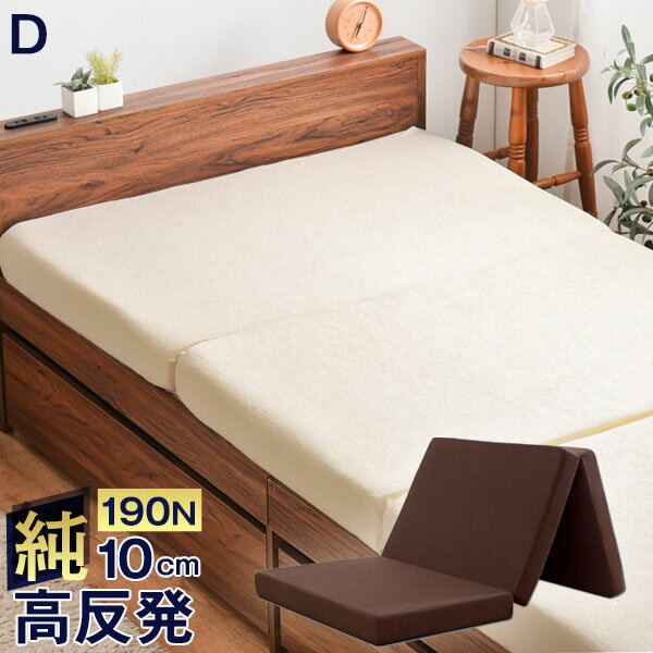★12時〜12H全品P5倍★【送料無料】 当店限定「純」高反発マットレス 高反発 極厚10cm 3つ折り ダブル 190N 超低ホル ベッドマット 腰に優しい マットレス 折りたたみ 高反発マット 10cm 三つ折り 高反発 マットレス 密度25D 圧縮マットレス