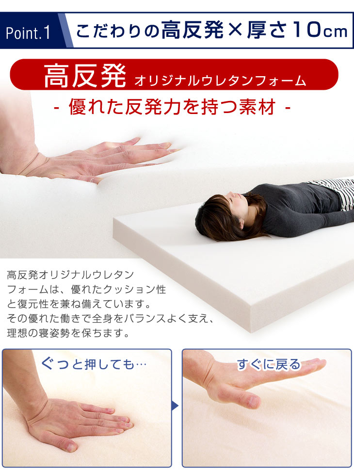 ★本日12時〜12H全品P5倍★《送料無料》 当店限定「純」高反発マットレス 極厚10cm 三つ折りマットレス セミダブル 190N 洗えるカバー 超低ホル ベッドマット 折りたたみ 高反発マット 3つ折り 10cm 高反発マットレス 密度25D 高反発 マットレス